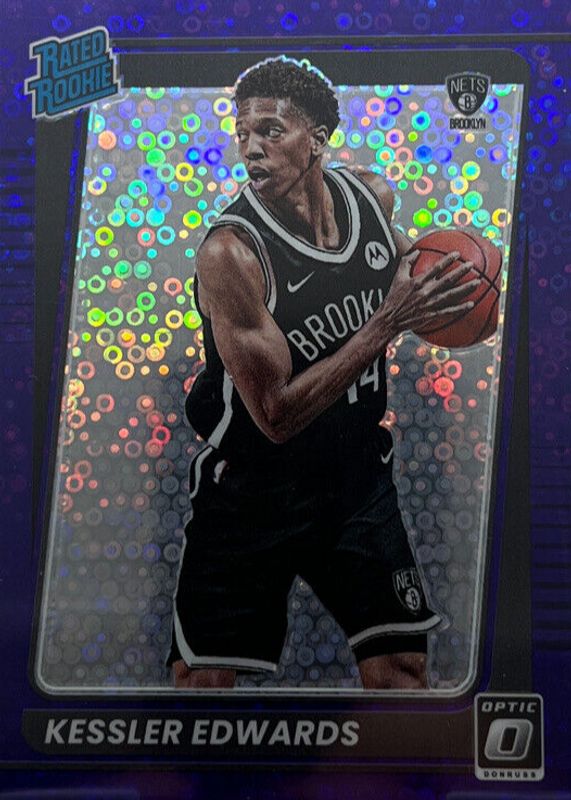 The Kessler Edwards 2021 Optic #154 Fast Break Purple /95 Rookie card in Raw condition has not changed in price in the last 30 days and was last sold for $3.50 .