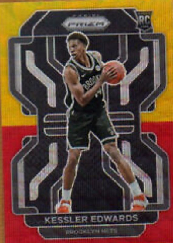 The Kessler Edwards 2021 Prizm #284 Red & Gold Wave Rookie card in Raw condition has not changed in price in the last 30 days and was last sold for $8.00 .
