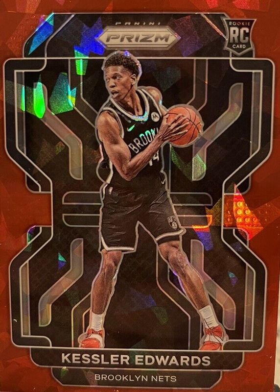 2021-22 Panini Prizm Basketball Red Cracked Ice Kessler Edwards RC Nets #284
