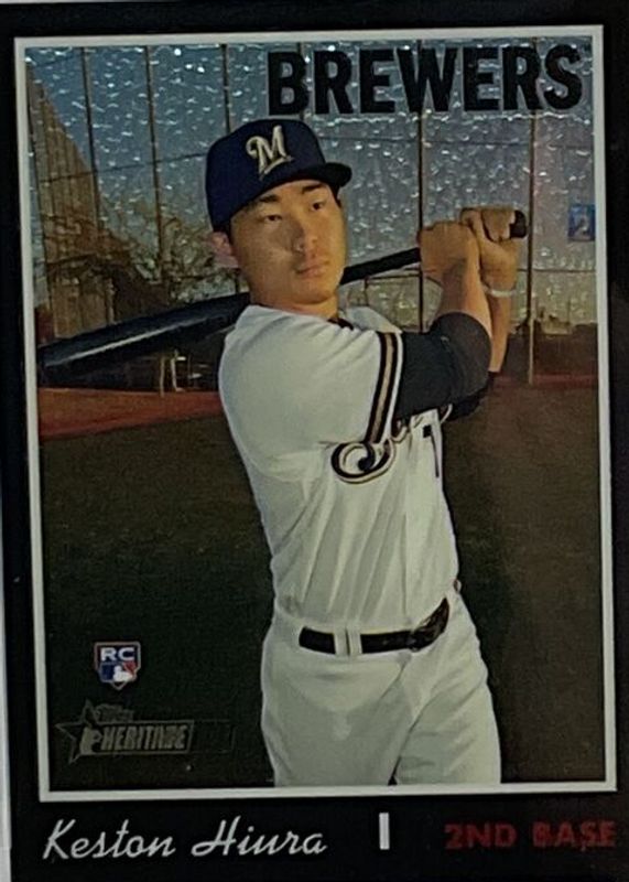 This card is 1 of 5 Keston Hiura's card variations in the 2019 Topps Heritage set being tracked by Sports Card Investor, including Base, Photo Variation (Action), Chrome /999, and Chrome - Refractor /570.