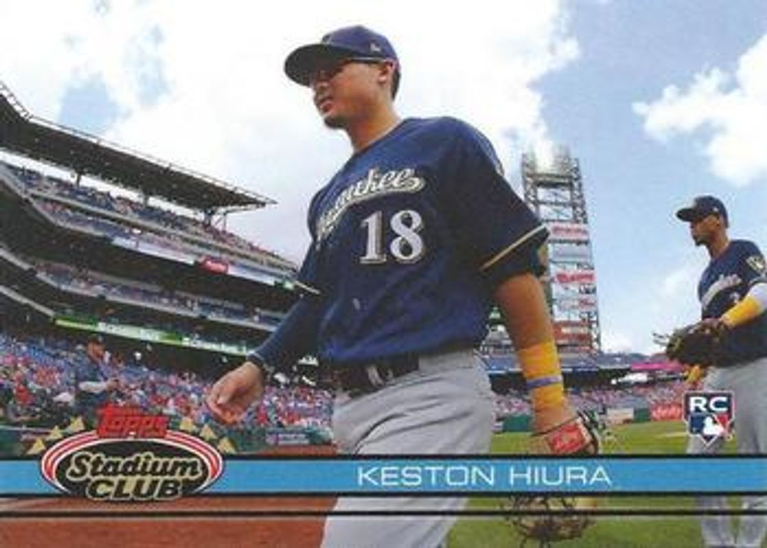 The Keston Hiura 2019 Topps Throwback Thursday #126 Base Rookie card is 1 of 3 Keston Hiura's card variations in the 2019 Topps Throwback Thursday set being tracked by Sports Card Investor, including #215 Base, and #239 Base.
