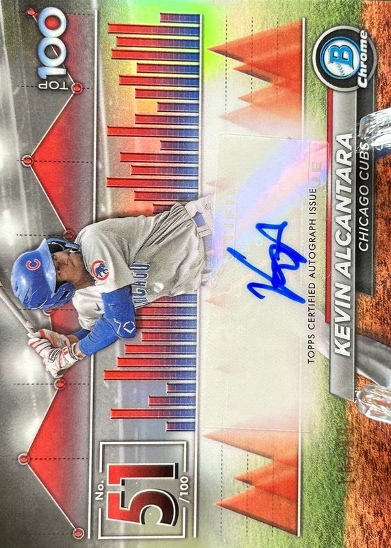 The Kevin Alcantara 2024 Bowman #BTPA-51 Bowman Scouts' Top 100 Autographs /99 card in Raw condition has not changed in price in the last 30 days and was last sold for $8.50 .