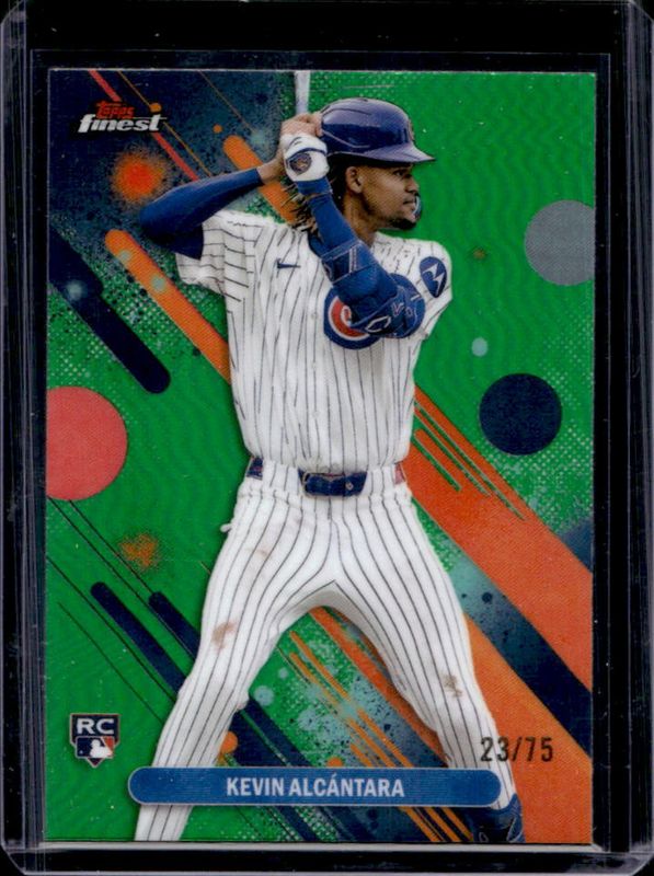 The Kevin Alcantara 2025 Topps Finest #33 Base Common - Green Refractor /75 Rookie card is 1 of 157 Kevin Alcantara's card variations in the 2025 Topps Finest set being tracked by Sports Card Investor, including Common, Rare, Uncommon, Common - Checkerboard Refractor, and Common - Refractor.