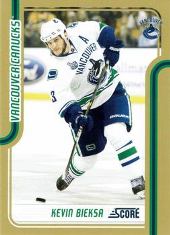 The Kevin Bieksa 2011 Score #449 Gold Rush card is 1 of 5 Kevin Bieksa's card variations in the 2011 Score set being tracked by Sports Card Investor, including Base, Black Ice, Glossy, and Playoff Heroes.
