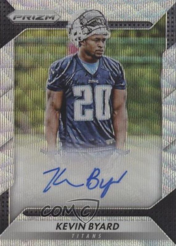 The Kevin Byard 2016 Prizm #RA-KBY Rookie Autographs - Blue Wave /149 card in Raw condition has not changed in price in the last 30 days and was last sold for $5.50 .