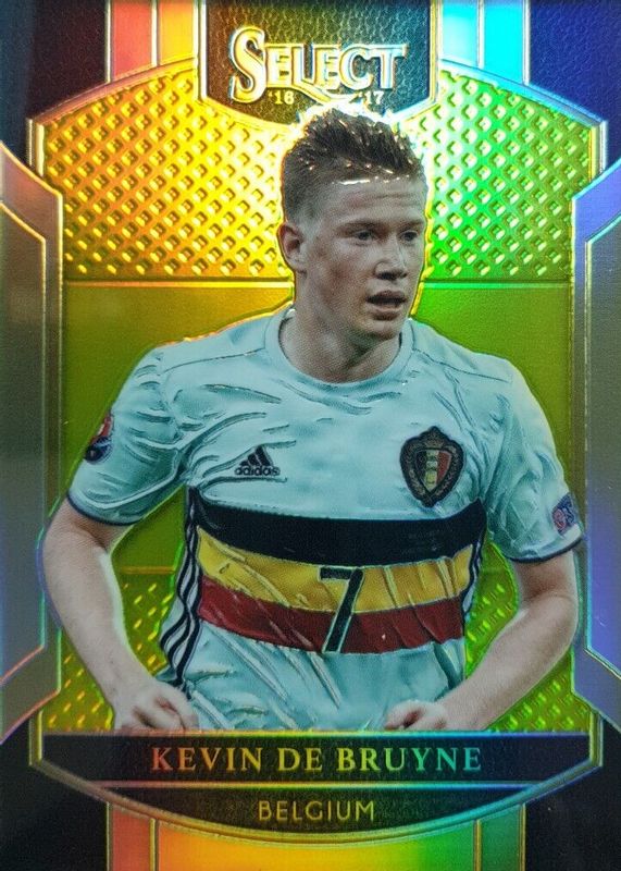 This card is 1 of 13 Kevin De Bruyne's card variations in the 2016 Select set being tracked by Sports Card Investor, including Terrace, Terrace Multi-Color, Terrace Silver, Terrace Blue /299, and Terrace Red /199.