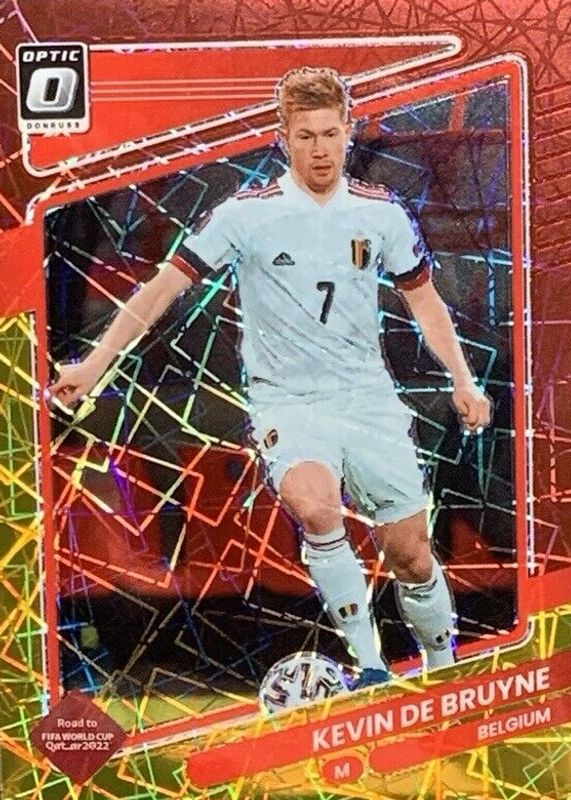 The Kevin De Bruyne 2021 Donruss #11 Optic - Red & Gold Velocity /8 card in Raw condition has not changed in price in the last 30 days and was last sold for $50.00 .