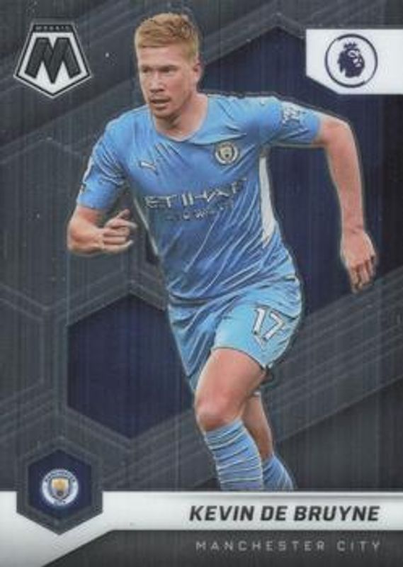 The Kevin De Bruyne 2021 Mosaic Premier League #16 Base card is 1 of 39 Kevin De Bruyne's card variations in the 2021 Mosaic Premier League set being tracked by Sports Card Investor, including Blue Pulsar, Choice Peacock, Choice Red & Green, Genesis, and Gold Pulsar.