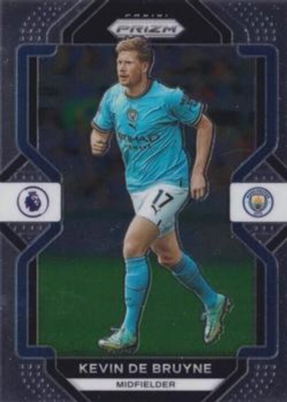 The Kevin De Bruyne 2022 Prizm Premier League #5 Base card is 1 of 73 Kevin De Bruyne's card variations in the 2022 Prizm Premier League set being tracked by Sports Card Investor, including Breakaway, Choice Blue Yellow Green, Green Ice, Green Pulsar, and Hyper.