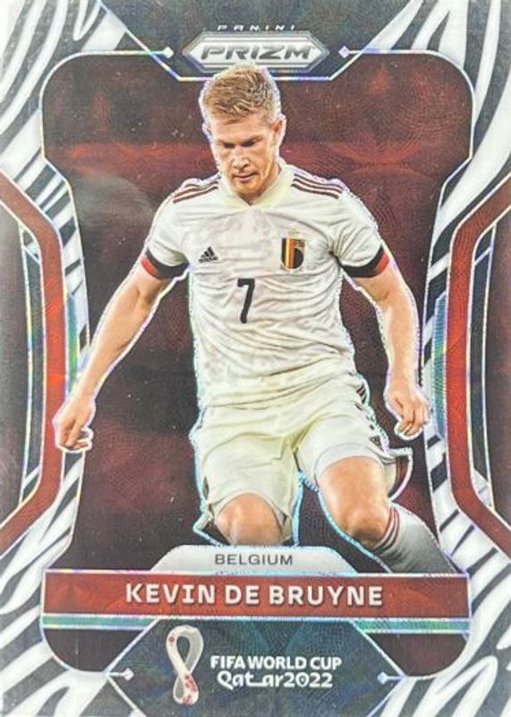 The Kevin De Bruyne 2022 Prizm World Cup #19 Choice Zebra /(SSP) card in Raw condition has not changed in price in the last 30 days and was last sold for $31.00 .