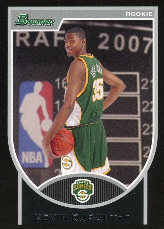 The Kevin Durant 2007 Bowman #111 Base /2999 Rookie card in Raw condition has moved up $10.99 (+28.2%) in the last 30 days and was last sold for $49.99 .