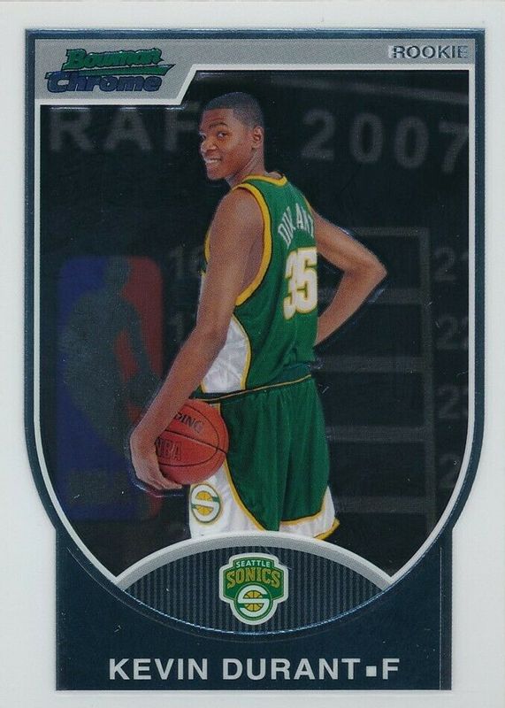 The Kevin Durant 2007 Bowman #111 Chrome /2999 Rookie card in Raw condition has not changed in price in the last 30 days and was last sold for $66.65 .