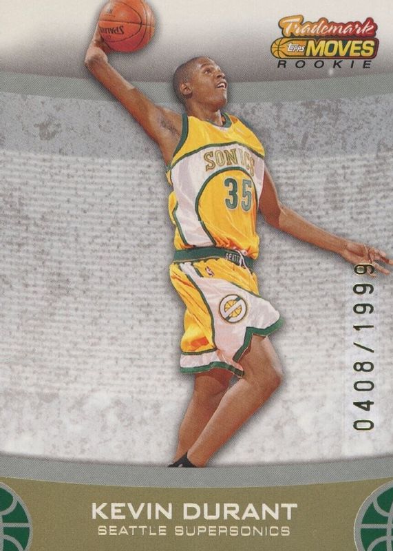 The Kevin Durant 2007 Topps Trademark Moves #61 Base Rookie /1999 card in Raw condition has not changed in price in the last 30 days and was last sold for $31.00 .