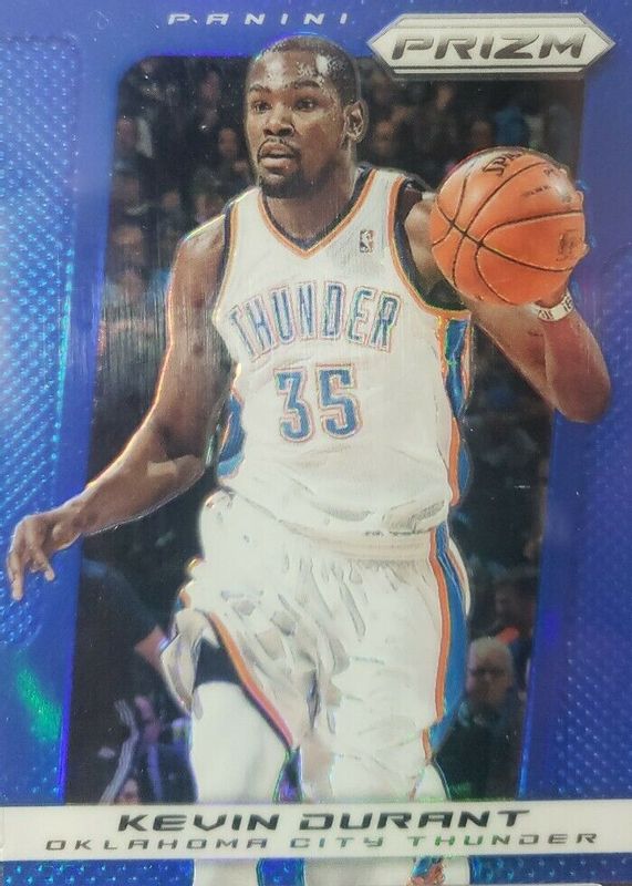 The Kevin Durant 2013 Prizm #147 Blue card in Raw condition has moved down -$39.00 (-52.7%) in the last 30 days and was last sold for $35.00 .