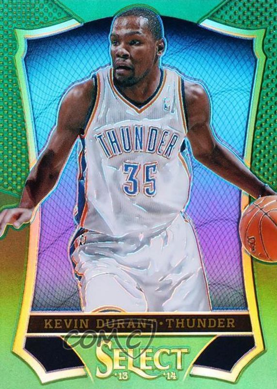 The Kevin Durant 2013 Select #136 Green /5 card in Raw condition has not changed in price in the last 30 days and was last sold for $580.00 .
