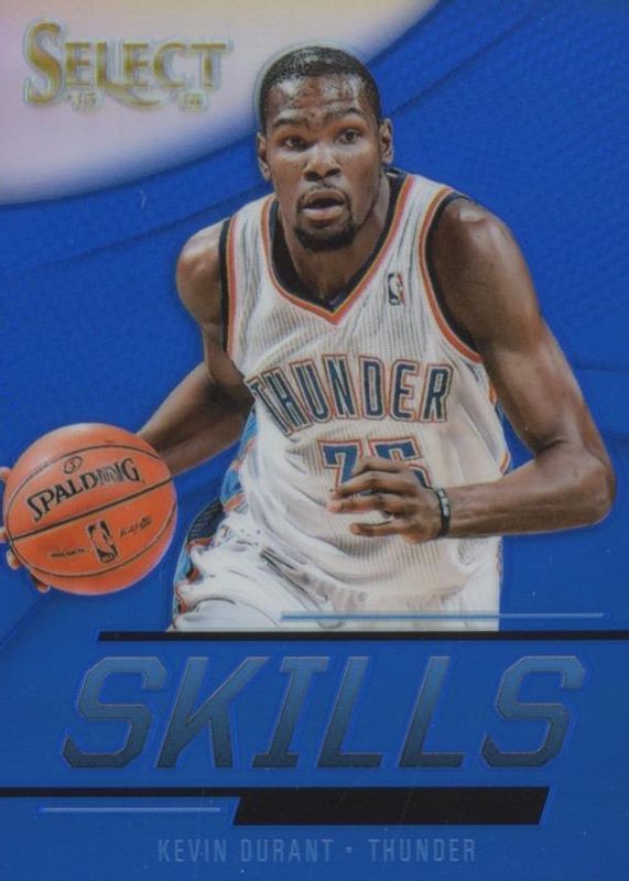 The Kevin Durant 2013 Select #15 Skills - Blue /49 card in Raw condition has not changed in price in the last 30 days and was last sold for $31.02 .