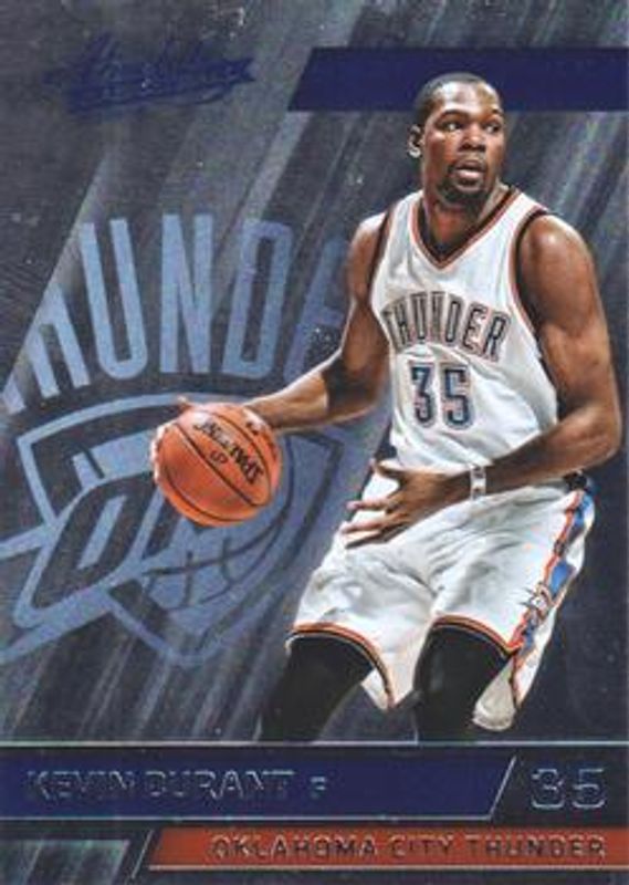 The Kevin Durant 2015 Absolute #65 Base /999 card is 1 of 9 Kevin Durant's card variations in the 2015 Absolute set being tracked by Sports Card Investor, including Spectrum Gold /999, Spectrum Black /1, Iconic Autographs /149, NBA Stars - Materials /99, and Glass /(SSP).