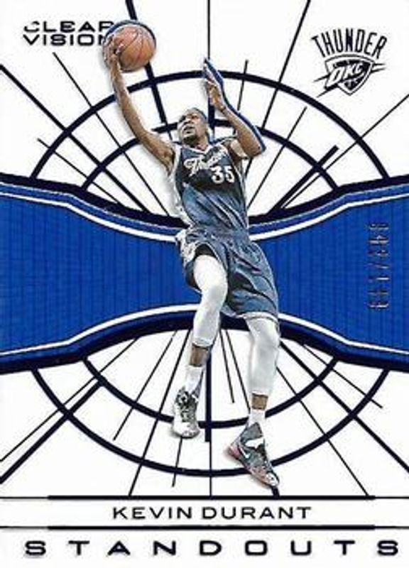 The Kevin Durant 2015 Clear Vision #2 Standouts - Blue /149 card is 1 of 28 Kevin Durant's card variations in the 2015 Clear Vision set being tracked by Sports Card Investor, including #127 Base, #127b Base, #28 Base, #127 Bronze, and #28 Bronze.