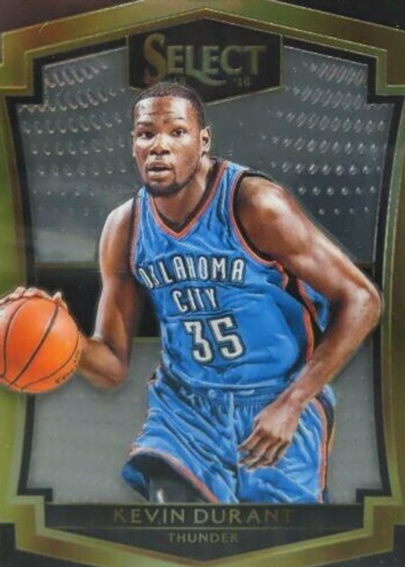 This card is 1 of 28 Kevin Durant's card variations in the 2015 Select set being tracked by Sports Card Investor, including Concourse, Concourse Silver, Concourse Tri-Color, Courtside, and Courtside Silver.