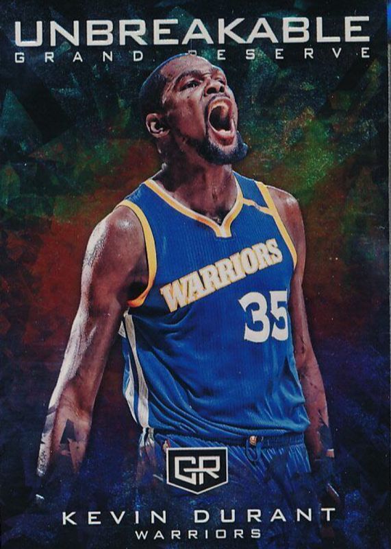 The Kevin Durant 2016 Grand Reserve #UN-6 Unbreakable card in Raw condition has not changed in price in the last 30 days and was last sold for $4.35 .