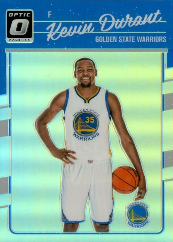 The Kevin Durant 2016 Optic #137 Holo card in Raw condition has moved up $4.94 (+220%) in the last 30 days and was last sold for $7.19 .