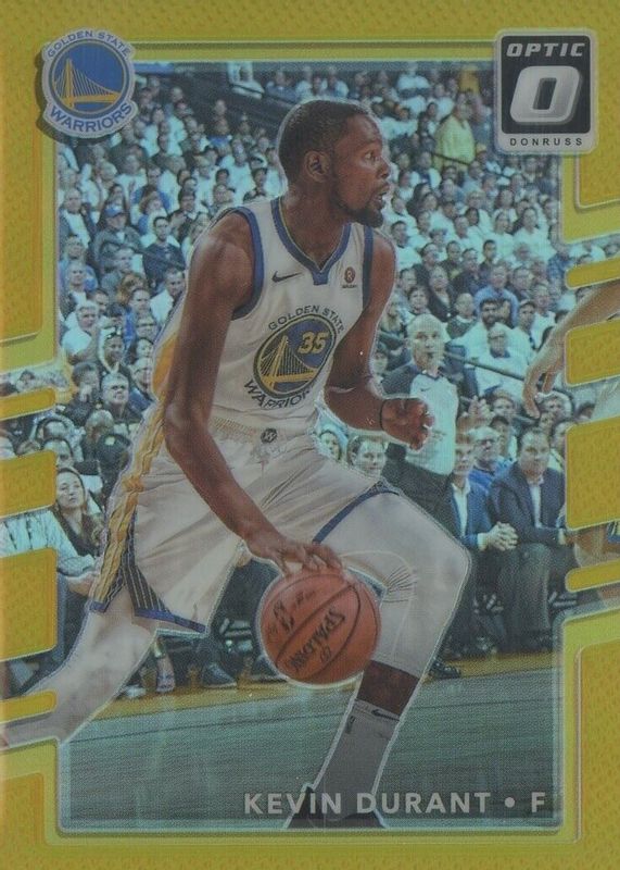 The Kevin Durant 2017 Optic #47 Gold /10 card in Raw condition has not changed in price in the last 30 days and was last sold for $168.50 .