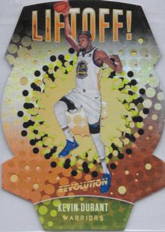 The Kevin Durant 2017 Revolution #7 Liftoff! card is 1 of 26 Kevin Durant's card variations in the 2017 Revolution set being tracked by Sports Card Investor, including Base, Astro, Fractal, Groove, and Impact.