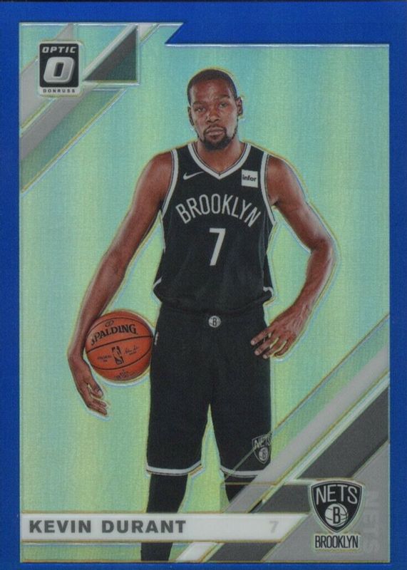 The Kevin Durant 2019 Optic #112 Blue /59 card in Raw condition has not changed in price in the last 30 days and was last sold for $5.00 .