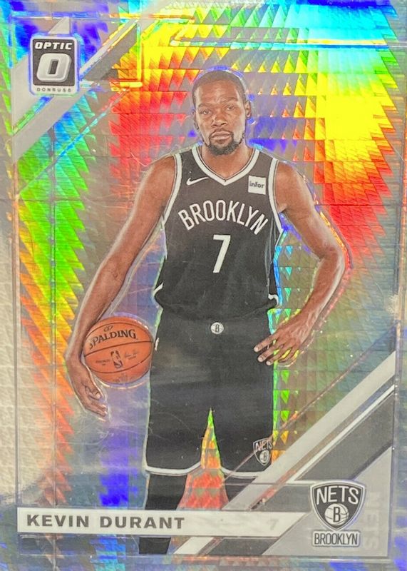 The Kevin Durant 2019 Optic #112 Tmall Lucky Envelopes /8 card in Raw condition has not changed in price in the last 30 days and was last sold for $47.00 .