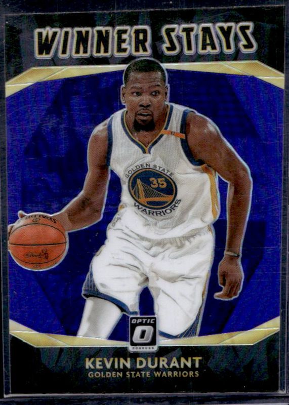 The Kevin Durant 2020 Optic #18 Winner Stays - Purple card is 1 of 86 Kevin Durant's card variations in the 2020 Optic set being tracked by Sports Card Investor, including Base, Blue Pulsar, Blue Velocity, Checkerboard, and Choice Red & Green.