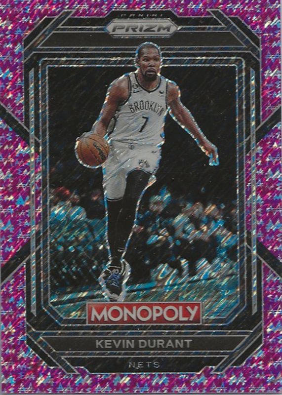 The Kevin Durant 2022 Prizm Monopoly #7 Pink Money Shimmer /5 card in Raw condition has not changed in price in the last 30 days and was last sold for $76.00 .