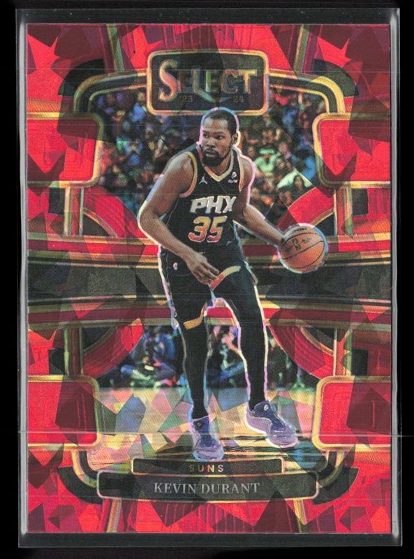 The Kevin Durant 2023 Select #2 Concourse Red Cracked Ice card is 1 of 229 Kevin Durant's card variations in the 2023 Select set being tracked by Sports Card Investor, including Concourse, Courtside, Mezzanine, Premier Level, and Concourse Blue Cracked Ice.