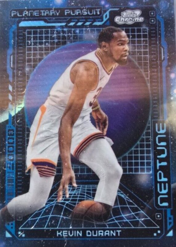The Kevin Durant 2023 Topps Chrome Cosmic #PPN-7 Planetary Pursuit - Neptune card in Raw condition has not changed in price in the last 30 days and was last sold for $93.00 .