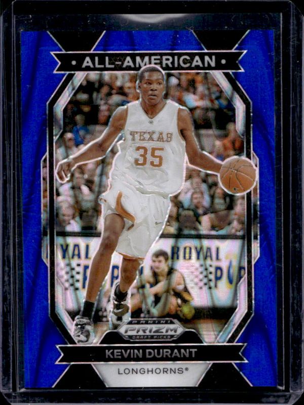 The Kevin Durant 2024 Prizm Draft Picks #5 All-American - Blue Seismic /149 card is 1 of 154 Kevin Durant's card variations in the 2024 Prizm Draft Picks set being tracked by Sports Card Investor, including #42b Base, #42 Base, #42 Green, #42b Green, and #42 Green Wave.