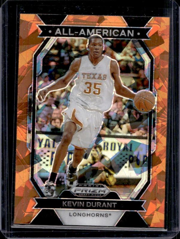 The Kevin Durant 2024 Prizm Draft Picks #5 All-American - Orange Ice card is 1 of 154 Kevin Durant's card variations in the 2024 Prizm Draft Picks set being tracked by Sports Card Investor, including #42b Base, #42 Base, #42 Green, #42b Green, and #42 Green Wave.