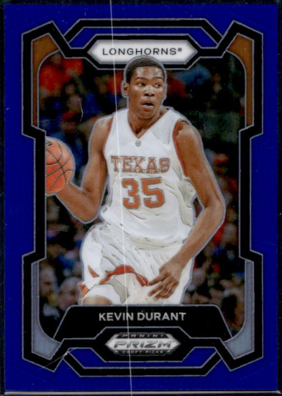 The Kevin Durant 2024 Prizm Draft Picks #42 Blue /199 card is 1 of 154 Kevin Durant's card variations in the 2024 Prizm Draft Picks set being tracked by Sports Card Investor, including #42b Base, #42 Base, #42 Green, #42b Green, and #42 Green Wave.