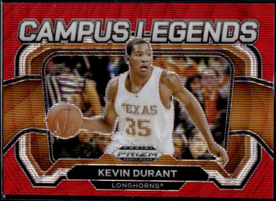 The Kevin Durant 2024 Prizm Draft Picks #3 Campus Legends - Red Wave card is 1 of 154 Kevin Durant's card variations in the 2024 Prizm Draft Picks set being tracked by Sports Card Investor, including #42b Base, #42 Base, #42 Green, #42b Green, and #42 Green Wave.