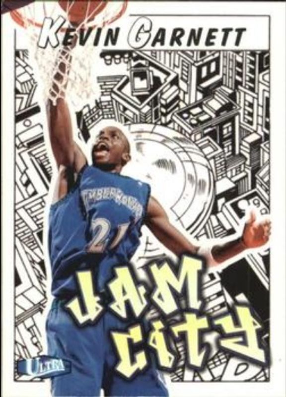 The Kevin Garnett 1997 Fleer Ultra #1-JC Jam City card is 1 of 19 Kevin Garnett's card variations in the 1997 Fleer Ultra set being tracked by Sports Card Investor, including #83 Base, #254 Base, #83G Gold Medallion, #254G Gold Medallion, and #83P Platinum Medallion /100.