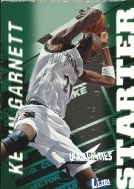 The Kevin Garnett 1997 Fleer Ultra #8-S Ultrabilities Starter card is 1 of 19 Kevin Garnett's card variations in the 1997 Fleer Ultra set being tracked by Sports Card Investor, including #83 Base, #254 Base, #83G Gold Medallion, #254G Gold Medallion, and #83P Platinum Medallion /100.