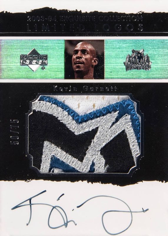 The Kevin Garnett 2003 Upper Deck Exquisite Collection #LL-KG Limited Logos Patch Autographs /75 card in Raw condition has not changed in price in the last 30 days and was last sold for $9,315.00 .