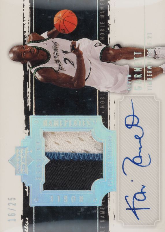 Kevin Garnett 2003 Upper Deck Exquisite Collection #NN-KG Noble Nameplates Patch Autographs /25 RAW Price Guide