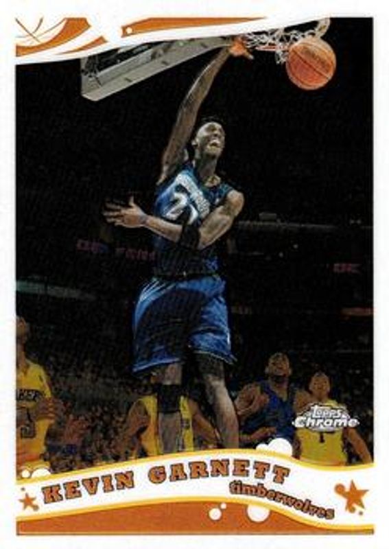 The Kevin Garnett 2005 Topps Chrome #64 Base card is 1 of 11 Kevin Garnett's card variations in the 2005 Topps Chrome set being tracked by Sports Card Investor, including Refractor /999, Premium Performers /400, Black Refractor /399, Gold Refractor /99, and Premium Performers Refractor /99.