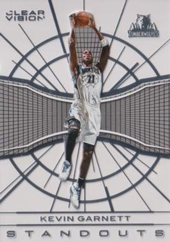 The Kevin Garnett 2015 Clear Vision #10 Standouts card is 1 of 26 Kevin Garnett's card variations in the 2015 Clear Vision set being tracked by Sports Card Investor, including #131 Base, #131b Base, #78 Base, #131 Bronze, and #78 Bronze.