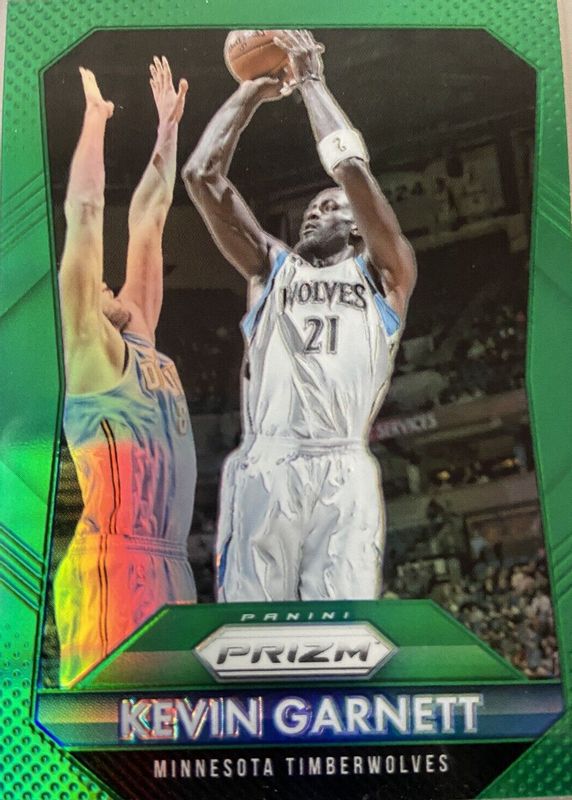 The Kevin Garnett 2015 Prizm #6 Green card in Raw condition has not changed in price in the last 30 days and was last sold for $5.50 .