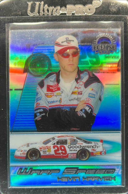 The Kevin Harvick 2002 Press Pass Eclipse #WS-6 Warp Speed card is 1 of 13 Kevin Harvick's card variations in the 2002 Press Pass Eclipse set being tracked by Sports Card Investor, including Base, Beckett Samples, Solar Eclipse, Autographs, and Racing Champions.