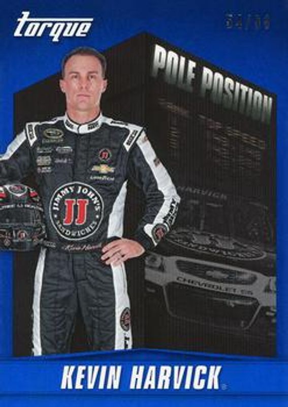 The Kevin Harvick 2016 Torque NASCAR #PP3 Pole Position Blue /99 card is 1 of 135 Kevin Harvick's card variations in the 2016 Torque NASCAR set being tracked by Sports Card Investor, including #62 Base, #80 Base, #3 Base, #3 Gold, and #80 Gold.