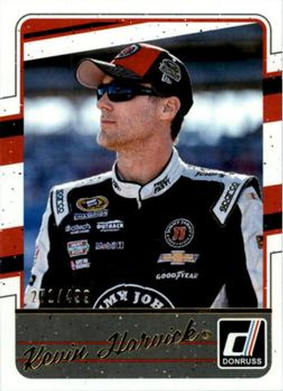 The Kevin Harvick 2017 Donruss NASCAR #40a Gold Foil /499 card is 1 of 109 Kevin Harvick's card variations in the 2017 Donruss NASCAR set being tracked by Sports Card Investor, including #4 Base, #40a Base, #40b Base, #92 Base, and #101 Base.