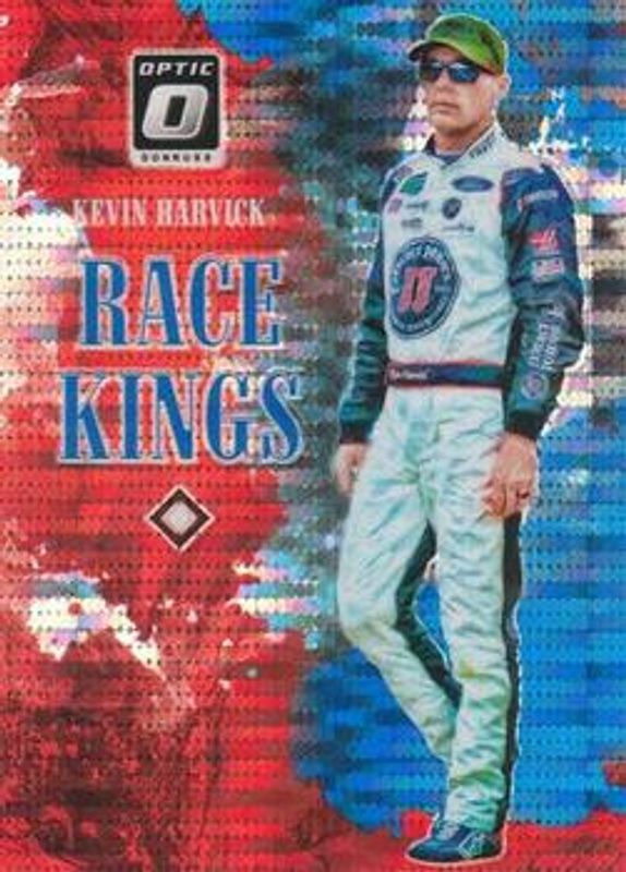 The Kevin Harvick 2019 Donruss NASCAR #3 Optic Blue Pulsar card is 1 of 98 Kevin Harvick's card variations in the 2019 Donruss NASCAR set being tracked by Sports Card Investor, including #60b Silver, #4 Silver, #107a Silver, #89 Silver, and #60a Silver.