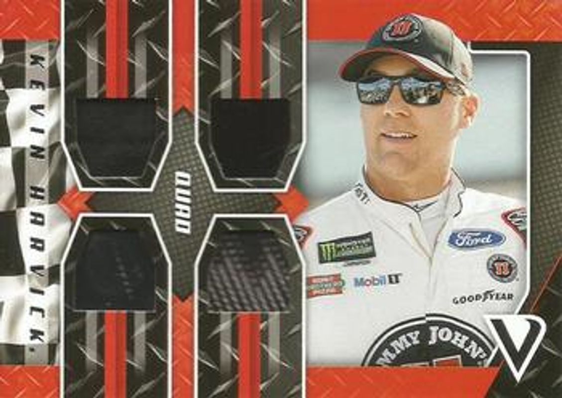 The Kevin Harvick 2019 Victory Lane NASCAR #QS-KH Quad Swatches card is 1 of 121 Kevin Harvick's card variations in the 2019 Victory Lane NASCAR set being tracked by Sports Card Investor, including #65 Base, #58 Base, #4 Base, #85 Base, and #85 Gold /25.