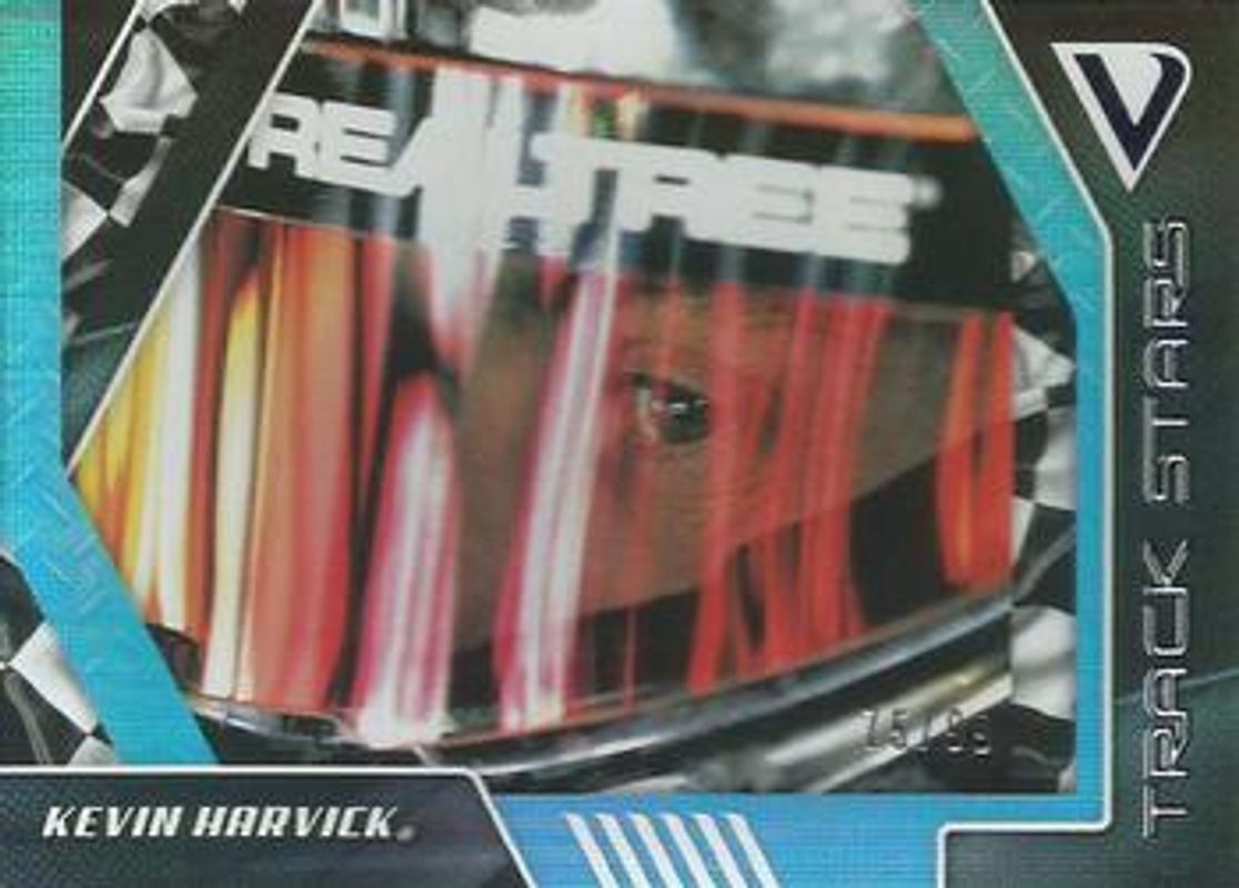 The Kevin Harvick 2019 Victory Lane NASCAR #TS2 Track Stars Blue /99 card is 1 of 121 Kevin Harvick's card variations in the 2019 Victory Lane NASCAR set being tracked by Sports Card Investor, including #65 Base, #58 Base, #4 Base, #85 Base, and #85 Gold /25.